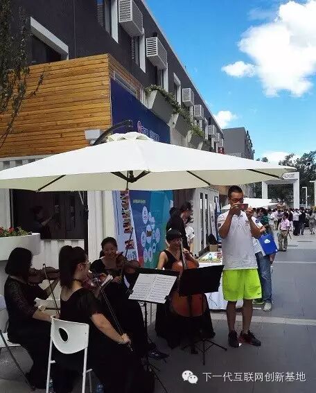 进入大街,场外的活动现场就设在大街两旁,只见人们穿梭于不同的展位之间,不时驻足聆听、咨询。人流穿梭往来,热闹非凡。更别出心裁的是,还有小提琴现场助兴,悠扬的琴声令人恍然进入了异国小镇。